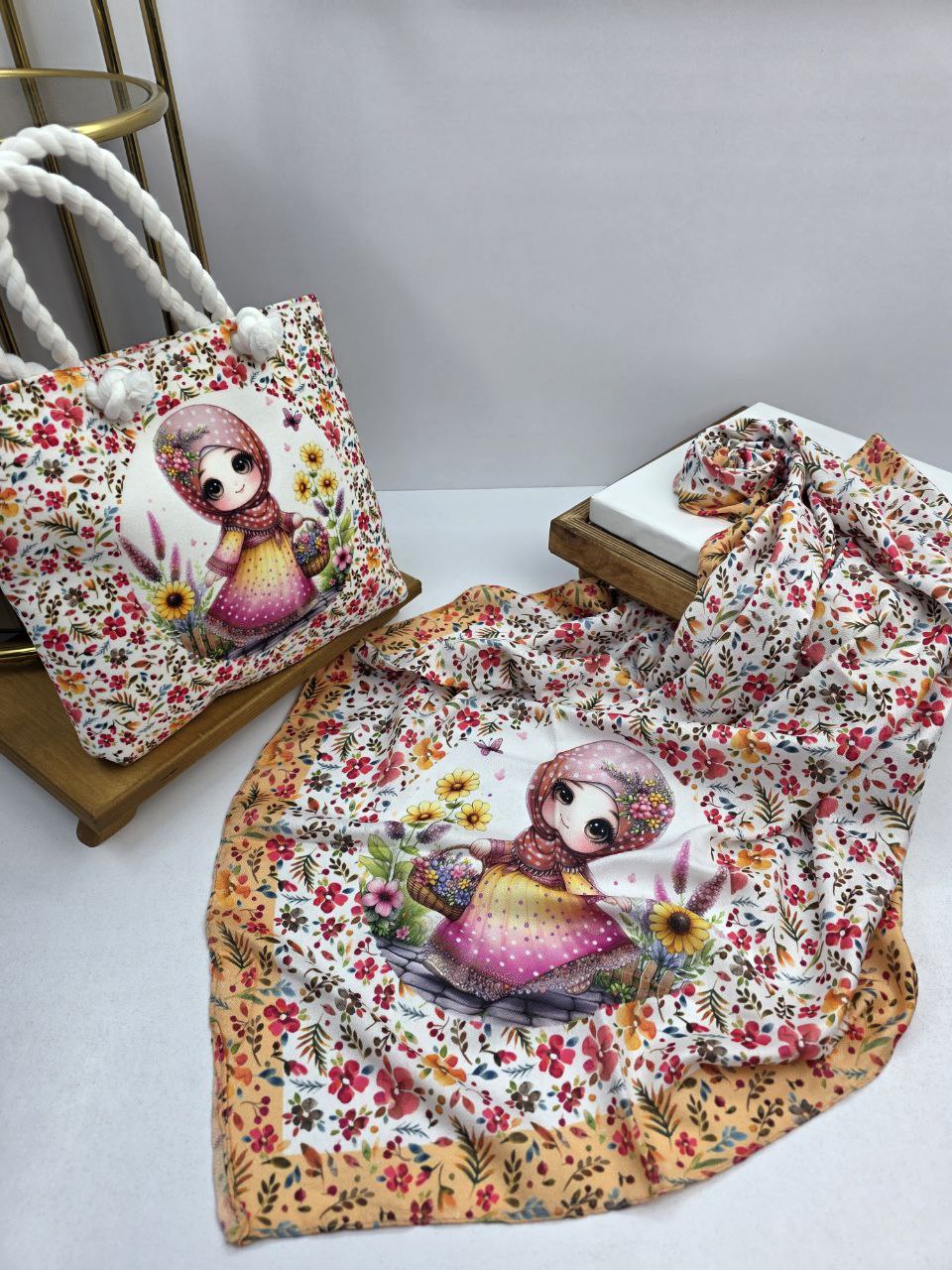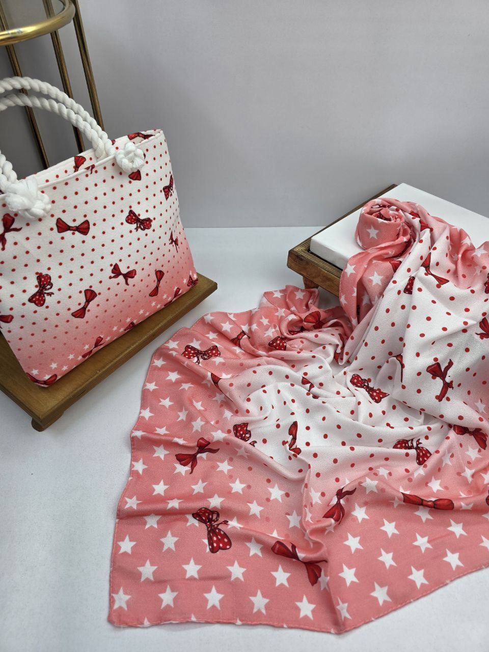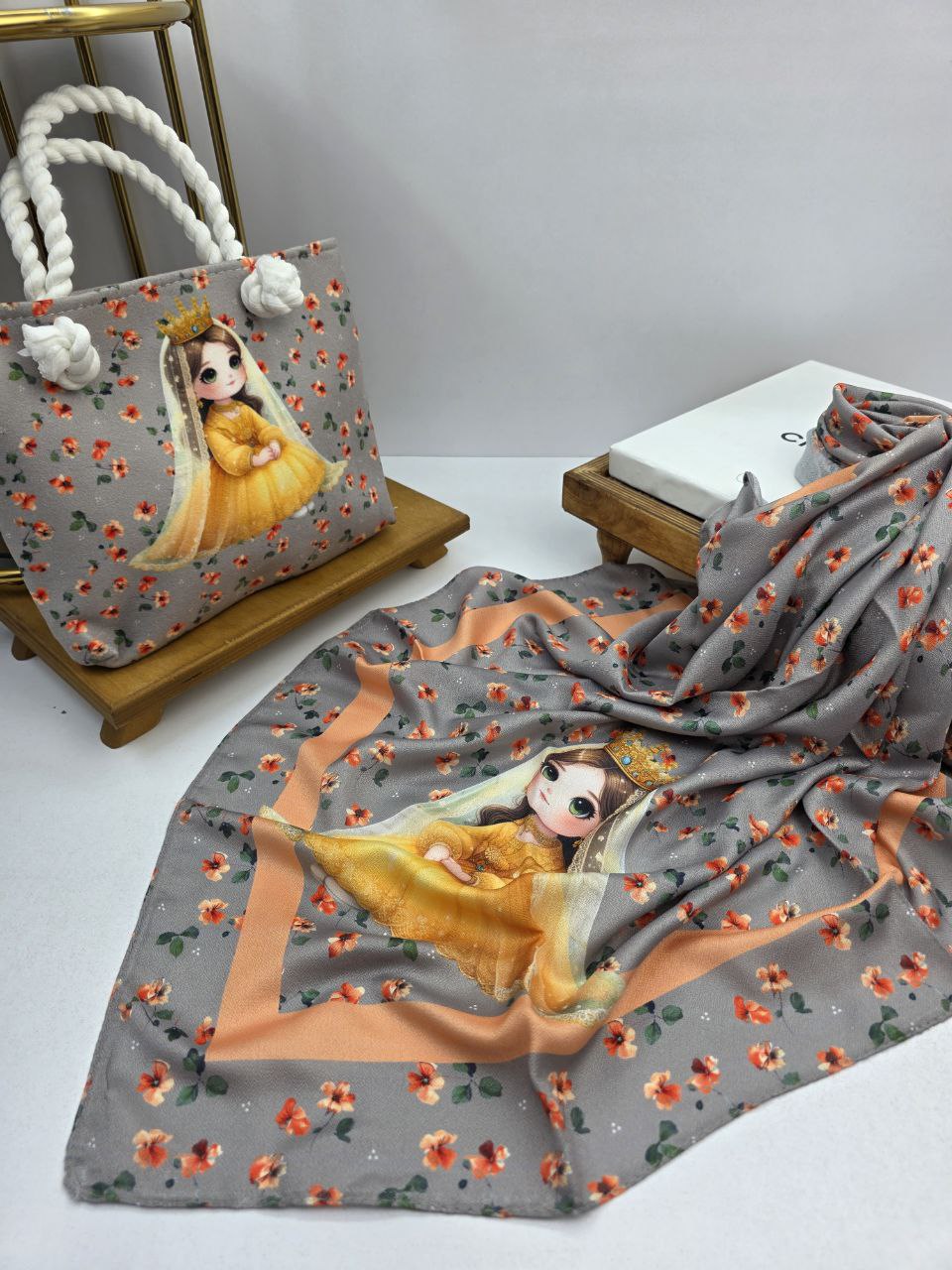 ست روسری وکیف دخترانه جنس نخی قواره 90 کیف مخمل درجه یک