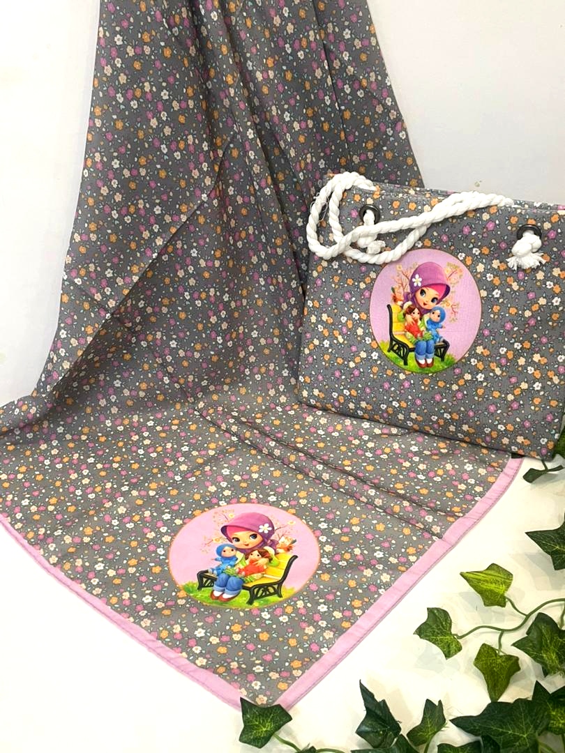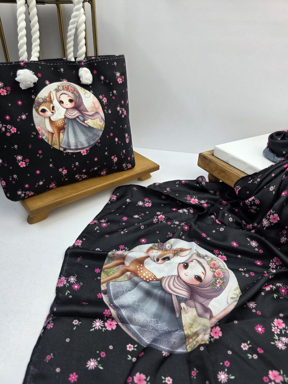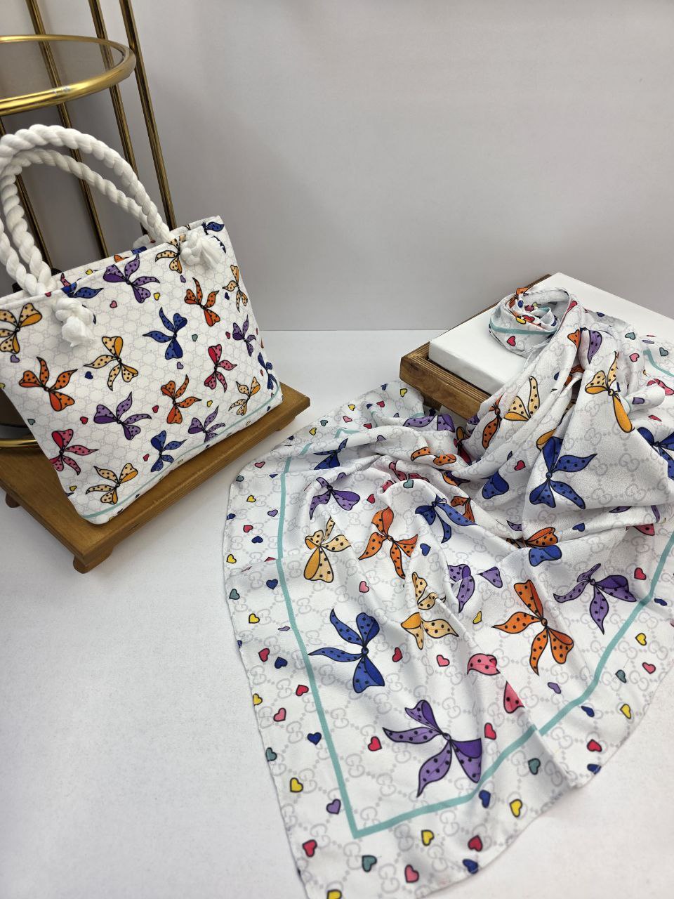 ست روسری وکیف دخترانه جنس نخی قواره 90 کیف مخمل درجه یک