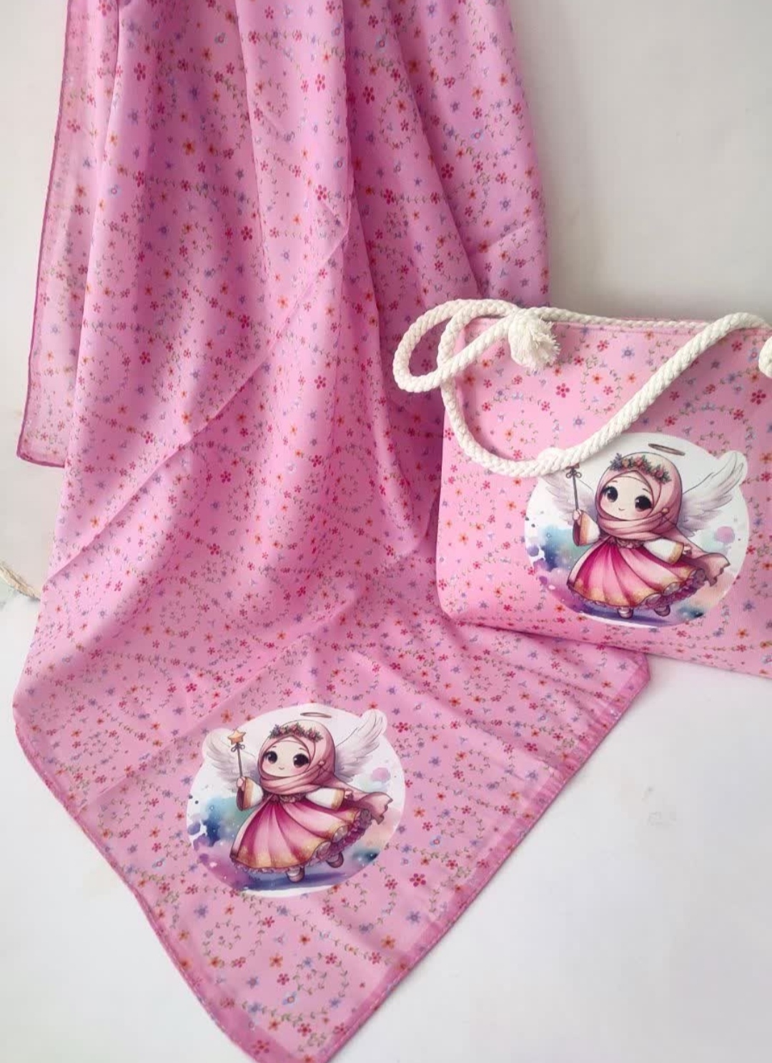 ست روسری و کیف دخترانه روسری نخی قواره ۹۵ درجه یک کیف مخمل ابعاد ۲۷در۳۰ قیمت ۲۲۵ تومان عمده موجودن
