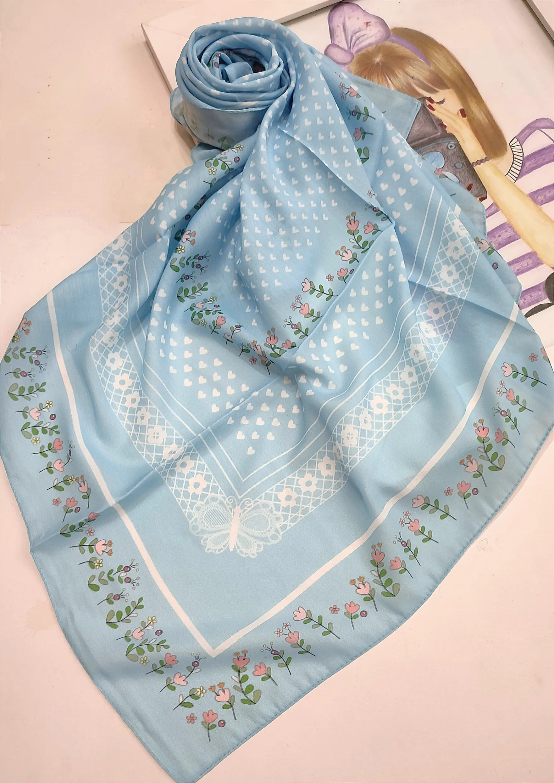 روسری دخترانه نخ درجه یک قواره 90 قیمت تک 219تومان عمده ایتا در خدمتم