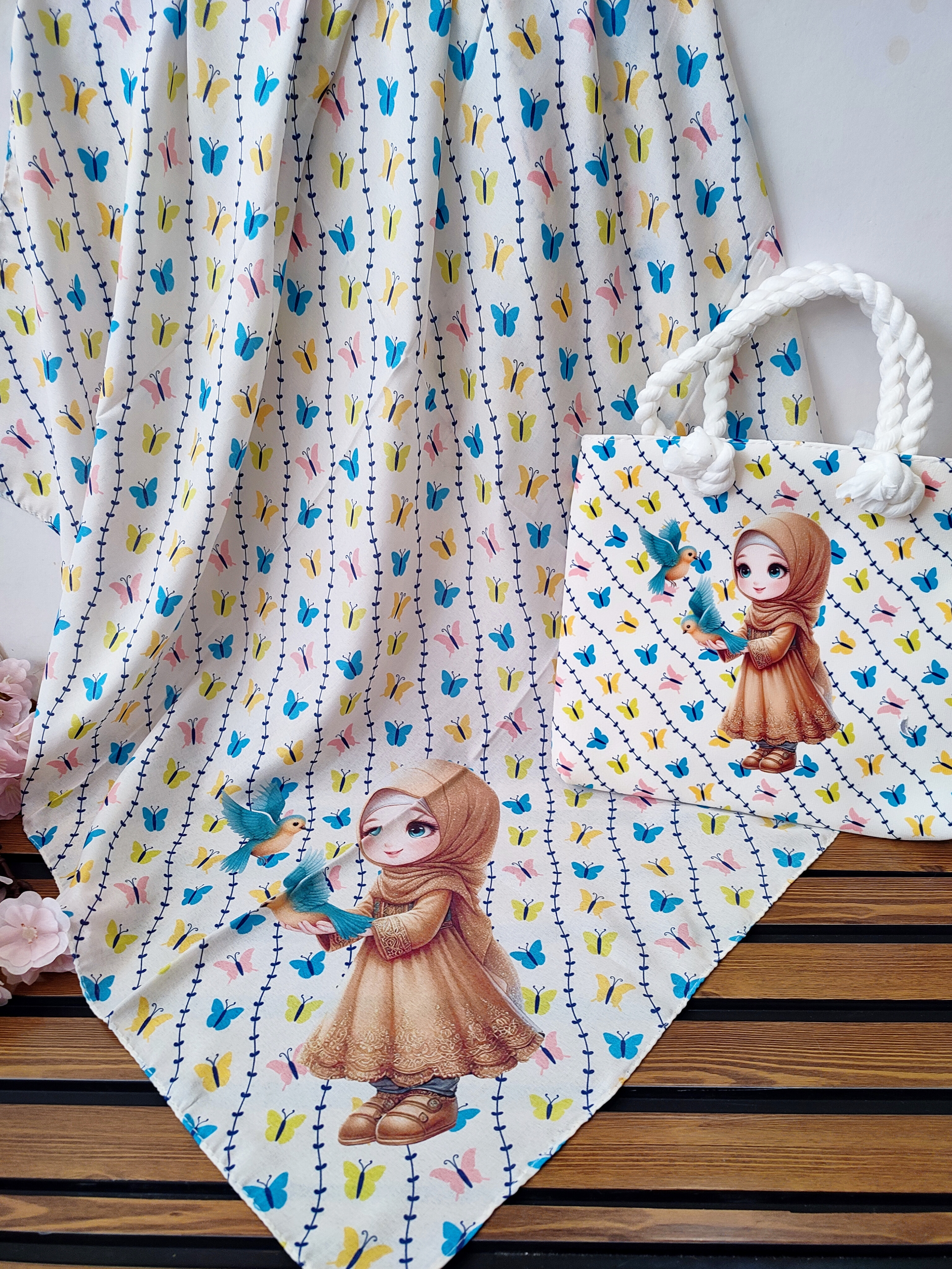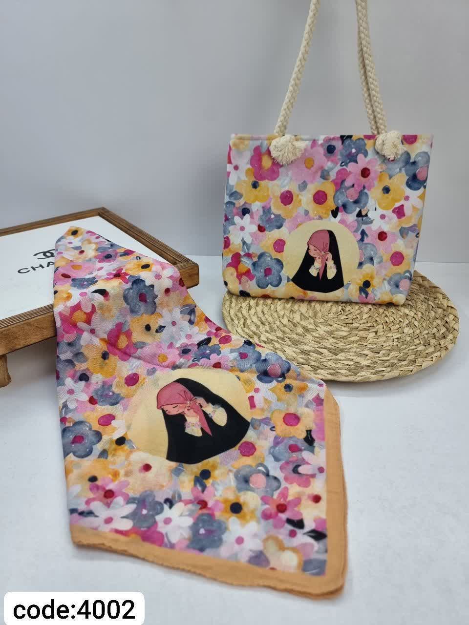 ست روسری و کیف دخترانه روسری نخی قواره ۹۵ درجه یک کیف مخمل ابعاد ۲۷در۳۰ قیمت ۲۲۵ تومان عمده موجودن