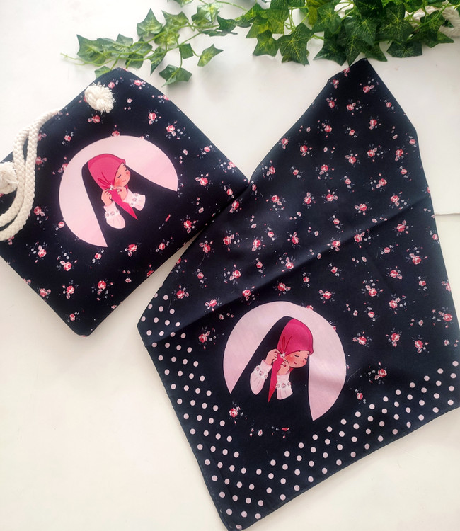 ست روسری و کیف دخترانه طرح حجاب روسری نخی قواره 90کیف مخمل قیمت 217تومان عمده لنتخابی